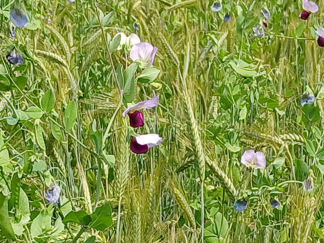 Grünland, Ackerbau mit Dinkel, Emmer, Weizen, Triticale, Ackerbohnen, Hafer, Kleegras, Menggetreide