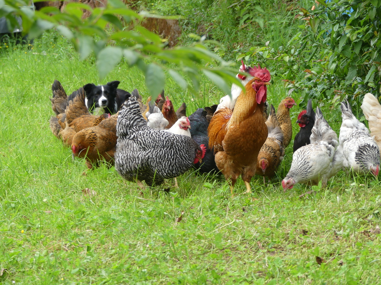 Schafe (Coburger Fuchsschaf); Hühner